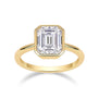 הטבעת Carmelle משלבת בין עוצמה לאלגנטיות. אבן מואסנייט חתוכה בצורת אמרלד (Emerald Cut) במרכז המסגרת המוזהבת, יוצרת ניגוד מושלם בין ברק קריר לזהב חמים. תכשיט נועז ומלא נוכחות למראה יוקרתי ומודרני.
