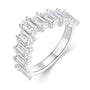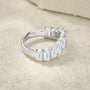 הטבעת Elani משלבת שורה של אבני מואסנייט חתוכות בצורת מלבן, ליצירת ברק ייחודי ומודרני. העיצוב המוארך והנוצץ שלה מעניק ליד מראה מלכותי ונקי, תוך שמירה על תחושת עדינות נשית. עשויה מכסף אמיתי 925 בעבודת יד מוקפדת.