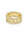 הטבעת Elysia היא הצהרה של עוצמה וסטייל. עשויה מציפוי זהב מבריק בעיצוב שרשרת עבה, ומשובצת באבנים נוצצות שמעניקות לה מראה יוקרתי ונועז. שילוב מושלם בין אלגנטיות מודרנית לנוכחות בולטת — תכשיט שמאיר כל הופעה.