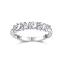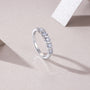 הטבעת Grace מבטאת אלגנטיות קלאסית עם שורה של אבני מואסנייט עגולות המשובצות בדיוק מושלם. העיצוב הפתוח בין האבנים מדגיש את הברק ומעניק לטבעת מראה נשי ורך במיוחד. עשויה מכסף אמיתי 925, עם גימור מבריק בעבודת יד.