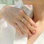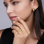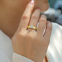 הטבעת Mira משלבת עיצוב מודרני ונקי עם נוכחות עוצמתית. האבן המרכזית החתוכה בצורת ריבוע מוקפת בגימור מוזהב ומבריק, ליצירת איזון מושלם בין עוצמה ליוקרה. עשויה מכסף אמיתי 925 בציפוי זהב יוקרתי בעבודת יד – טבעת שמקרינה ביטחון ואלגנטיות.