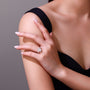 הטבעת Oralia מגלמת יוקרה מעודנת בזכות אבן מרכזית עגולה בשיבוץ צדדי של שתי אבני baguette. האיזון המושלם בין פשטות לנצנוץ מעניק לה מראה נצחי שמתאים לכל אירוע.