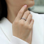 הטבעת Pearla מעוצבת בקו קלאסי ונקי, עם שורה רציפה של אבני מואסנייט עגולות בשיבוץ עדין ומדויק שמעניק לה ברק יוקרתי לאורך כל ההיקף. עשויה מכסף אמיתי 925 בעבודת יד מוקפדת, זו טבעת שמסמלת יוקרה נצחית ונשיות אלגנטית – מושלמת לשילוב עם כל סגנון לבוש.