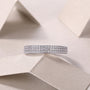 הטבעת Promise מסמלת אלגנטיות, אהבה ונצחיות — בעיצוב נקי ויוקרתי שנשאר רלוונטי בכל זמן. שיבוץ צפוף של אבני מואסנייט נוצצות יוצר אפקט מרהיב של ברק רציף ועדין סביב האצבע. עשויה מכסף אמיתי 925 בגימור מבריק בעבודת יד, לשילוב מושלם של עמידות, נוחות ויוקרה מעודנת.