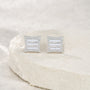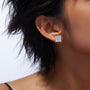 העגילים Nerine משלבים גיאומטריה יוקרתית עם עידון מודרני. הם משובצים באבני מואסנייט בחתך מלבני מסודרות בדיוק סימטרי, מוקפות מסגרת עדינה של אבנים עגולות — ליצירת אפקט נוצץ ואלגנטי. עשויים מכסף אמיתי 925 בעבודת יד קפדנית.