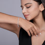 הצמיד Elara הוא מופת של נשיות וזוהר. שורת אבני מואסנייט עגולות, כל אחת ממוקמת בדיוק מושלם ליצירת אפקט של ניצוץ בלתי פוסק. עשוי מכסף אמיתי 925 בגימור מלוטש.